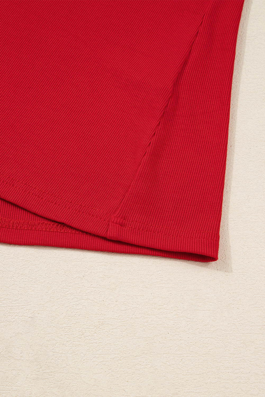 Racing Red Plaid Pearl Ruffled Sleeve Knitted Christmas Holiday Plus Size Top